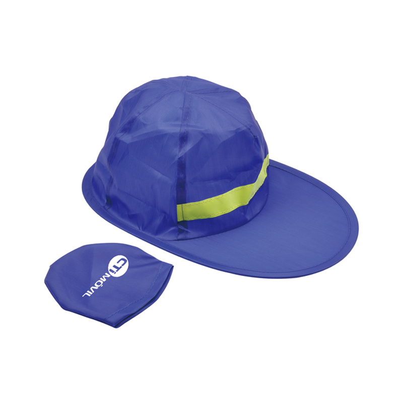 Nylon hat that folds into a small bag for easy carrying.