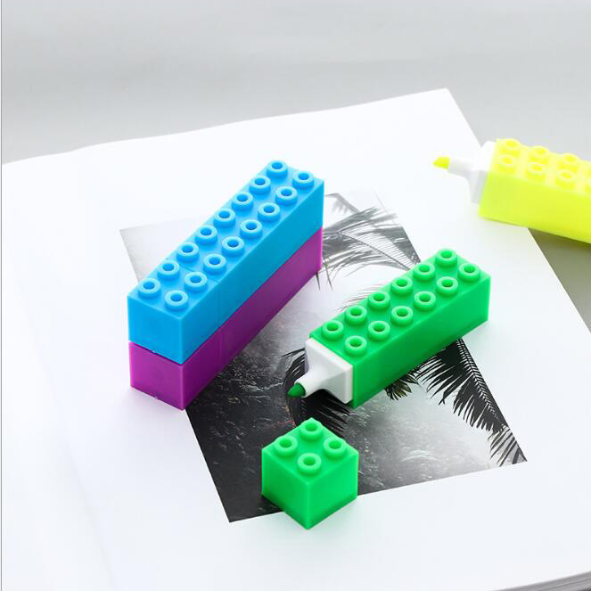 Building block shaped fluorescent pen can be spliced and stacked, can be written and played, can be customized and printed with various LOgOs