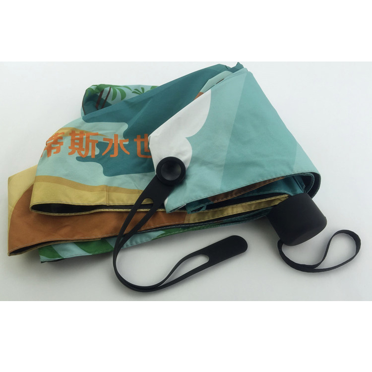 产品描述:满版彩印,色彩绚丽,铝合金中棒,8根伞骨,双层伞面,黑胶内层,有效防晒,随身携带,美观时尚。
